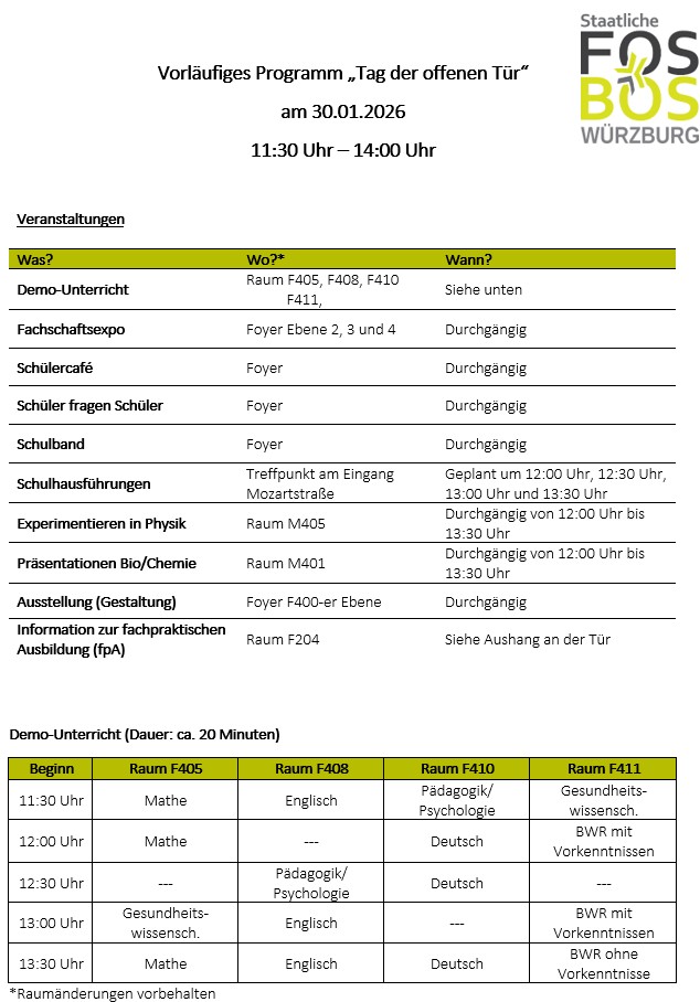 Informationsabend FOS/BOS zum Schuljahr 2026/2027 für Eltern und Schüler in der Aula: Ausbildungsrichtungen: Wirtschaft, Technik