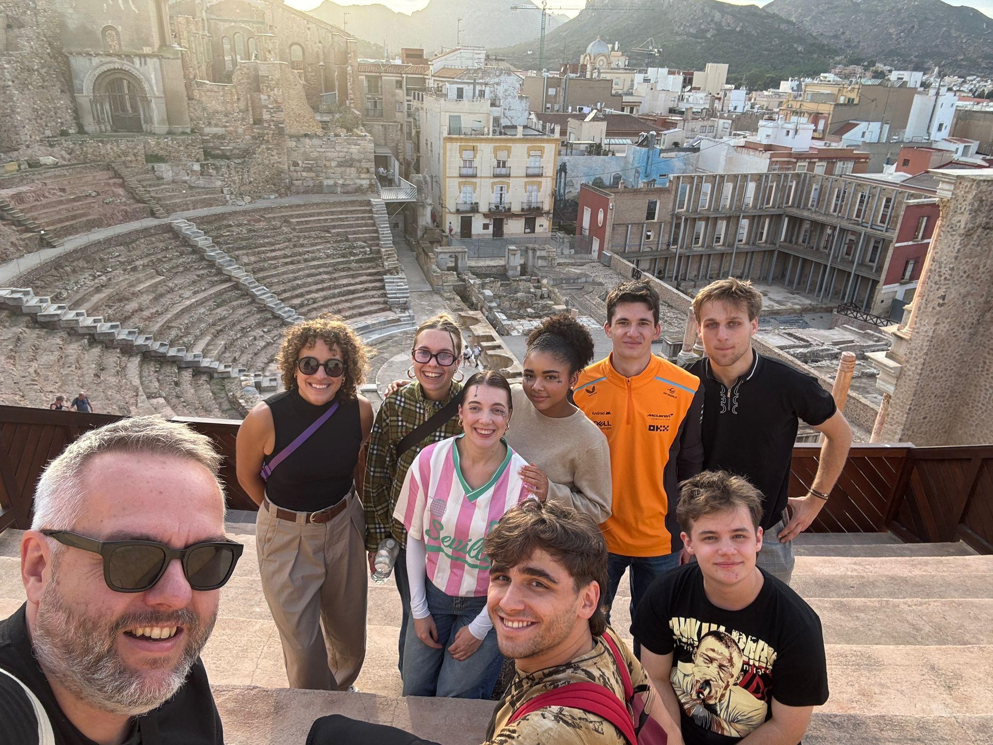 Hieß es auch in diesem Schuljahr für zehn Schülerinnen und Schüler aus den verschiedenen Zweigen der 13. Jahrgangsstufe sowie drei Lehrkräfte bei unserer diesjährigen Erasmus+ – Mobilität. Über zwei Wochen hinweg durften die Teilnehmenden an unserer spanischen Partnerschule Salesianos Cartagena, Colegio San Juan Bosco in ihren Praktika in verschiedene Bereiche hineinschnuppern. Einige unterstützten die Erzieherinnen und Erzieher in Kindergartengruppen, andere hospitierten im Unterricht, assistierten in verschiedenen Fächern oder wirkten bei Kunstprojekten sowie im Bereich Inklusion mit. Dank der engagierten Lehrkräfte vor Ort herrschte stets gute Stimmung. Wir wurden sehr herzlich betreut, fühlten uns von Anfang an willkommen und konnten so unsere Spanischkenntnisse in kurzer Zeit spürbar verbessern. Neben dem sprachlichem Kompetenzgewinn durften wir natürlich auch tolle Einblicke in die spanische Kultur und nicht zuletzt Kulinarik gewinnen, was in jeder Hinsicht bereichernd war: Museen, Kunstausstellungen, das römische Amphitheater, gemütliche Cafés, Tapas- und Paella-Restaurants und die wohl besten Churros/Ruedas der Welt, um nur einige zu nennen! Das Wetter zeigte sich zudem so mild, dass sogar ein Strandnachmittag möglich war – inklusive Baden im Meer. ¡Qué sueño!