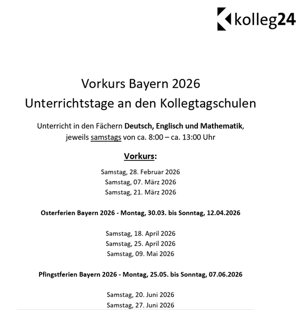 Kollegtage Vorkurs: https://www.ardalpha.de/lernen/telekolleg/infos-anmeldung/pruefungstermine/telekolleg-termine-vorkurs-22-24-100.html