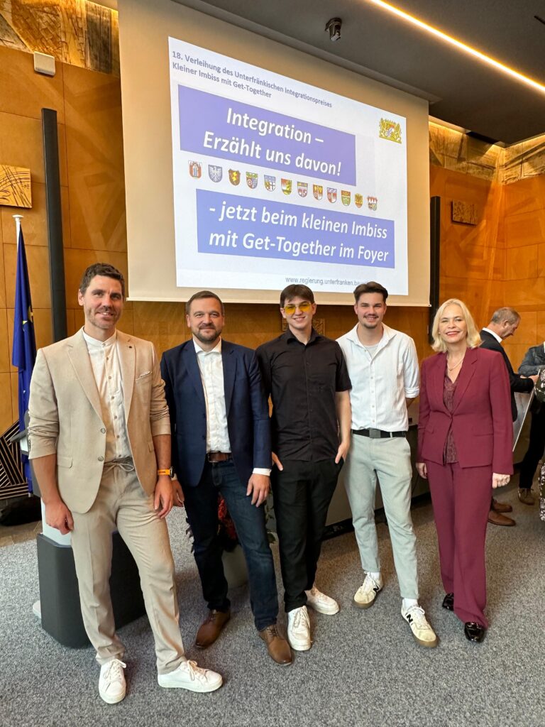 Die Schulband der FOS Würzburg durfte dieses Jahr zum vierten Mal in Folge die Verleihung des Integrationspreises in der Regierung von Unterfranken musikalisch untermalen. Die ehemaligen Allstars der Schule Leonard Eirich und Andreas Zeller unterbrachen für diesen Auftritt eigens kurzzeitig ihr neues Studentenleben und tauschten Zettel, Stift und Laptop gegen Klavier, Gitarre und Mikrofon.